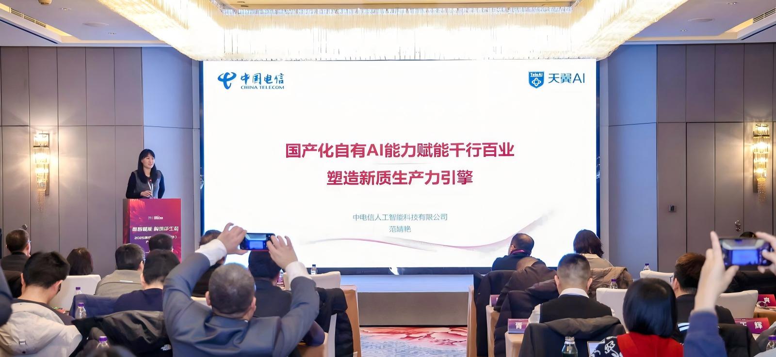 接下来拉开芯机联动联盟产业论坛的序幕,首先由中电信人工智能科技有限公司创新发展中心负责人兼中电信人工智能科技(上海)有限公司副总裁范婧艳发表主题演讲“国产化AI能力赋能千行百业”她指出,国产化自有AI能力正在成为塑造新质生产力的重要引擎。中电信AI公司已完成国内首个基于全国产化万卡集群训练的万亿参数大模型,并正式对外开源首个基于全国产化万卡集群和国产深度学习框架训练的千亿参数大模型——星辰语义大模型TeleChat2-115B,标志着国产大模型训练真正实现全国产化替代。